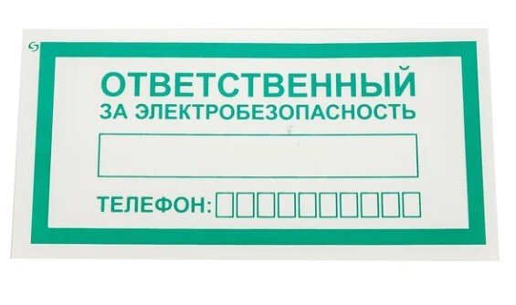 Знак "Ответственный за электробезопасность" Стандарт Знак а31 100x200 мм пленка