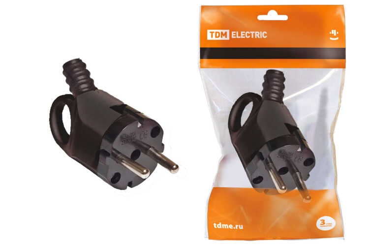 Вилка угловая с ушком с/з черная 16А 250В TDM
