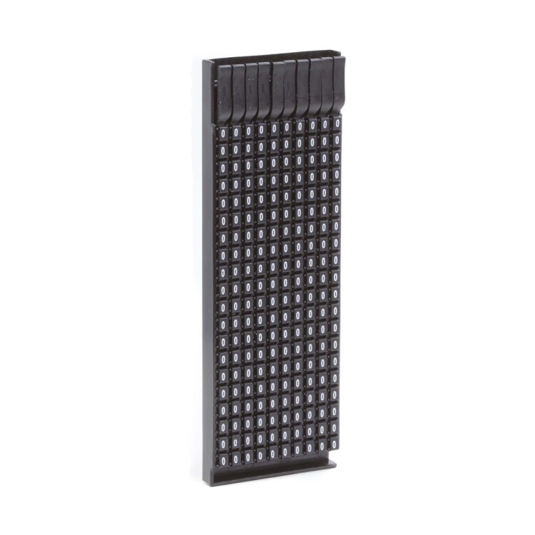 Ручная маркировка системы MARK 3 для маркировки проводов без разъединения электрической цепи из полиамида 6.6. Температура эксплуатации от –30 до +70 °С. Боковые штифты надежно фиксируют соединение друг с другом и позволяют добиться точного выравнивания маркеров. Цвет маркеров соответствует международной кодировке. Символ ""0"" белым цветом на черном маркере для сечения провода 1.5-2.5 мм2. 200 маркеров в упаковке.