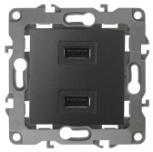 14-4110-05 ЭРА Устройство зарядное USB, 230В/5В-2100мА, IP20, Эра Elegance, антрацит (6/60/1920)