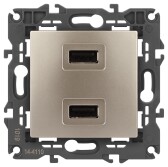 14-4110-04 ЭРА Устройство зарядное USB, 230В/5В-2100мА, IP20, Эра Elegance, шампань (6/60/960)